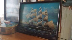 Espejo con marco de hierro, con un metro de alto, para cualquier uso.